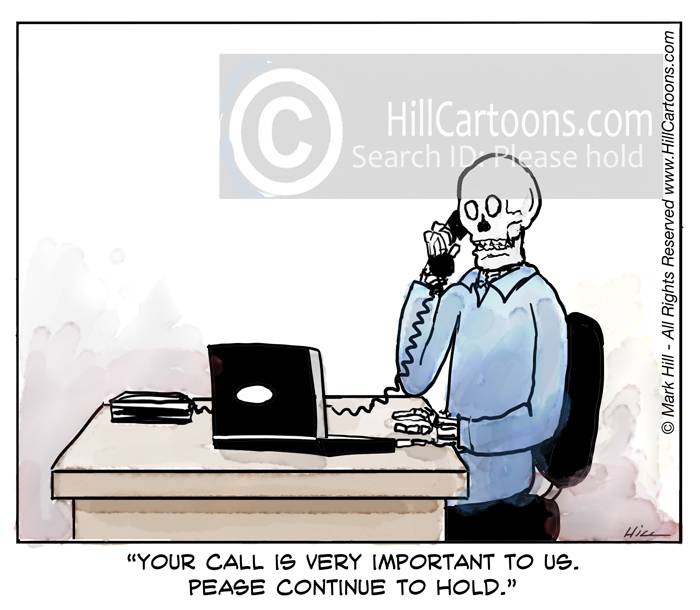 "Please hold' cartoon